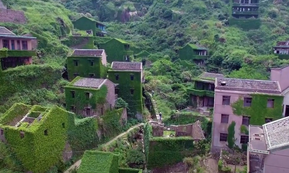 Zielone miasto duchów znajdujące się na zboczu chińskiej wyspy Shengshan. Jeszcze pod koniec XX wieku żyło tam ok. 2000 mieszkańców. Zmiany w gospodarce i trudności logistyczne (ogromna odległość do szkół czy problemy z dowozem pożywienia i innych środków niezbędnych do życia) sprawiły, że ludzie zaczęli się wyprowadzać. Ok. 500 domów pozostało bez opieki i przez lata zajmowała je jedynie roślinność.